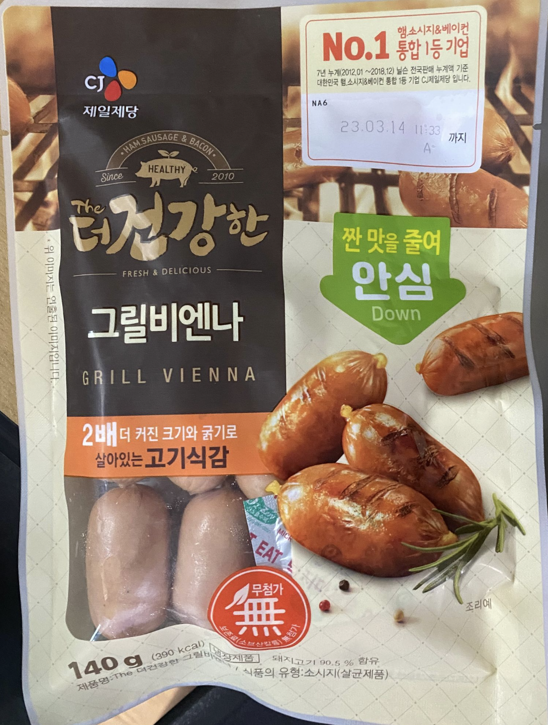 케찹에도 머스타드에도 어떤 소스에나 잘어울리는 CJ 더 건강한 그릴비엔나