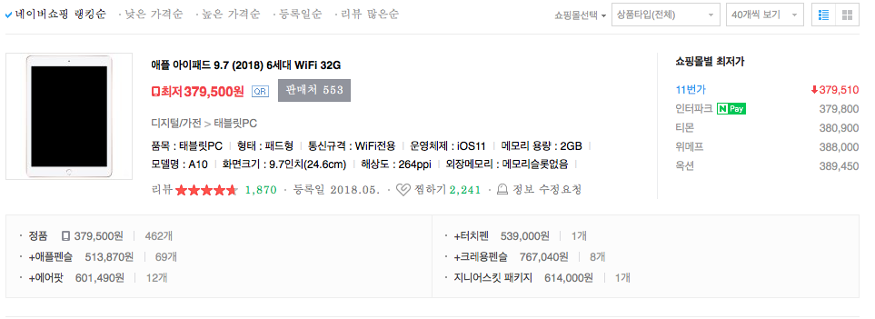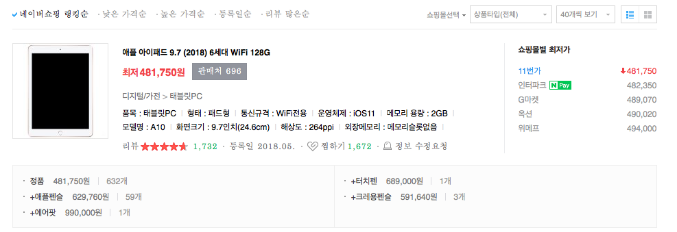 ● 저는 가성비와 용량이 가장 중요해요! -> 아이패드 6세대