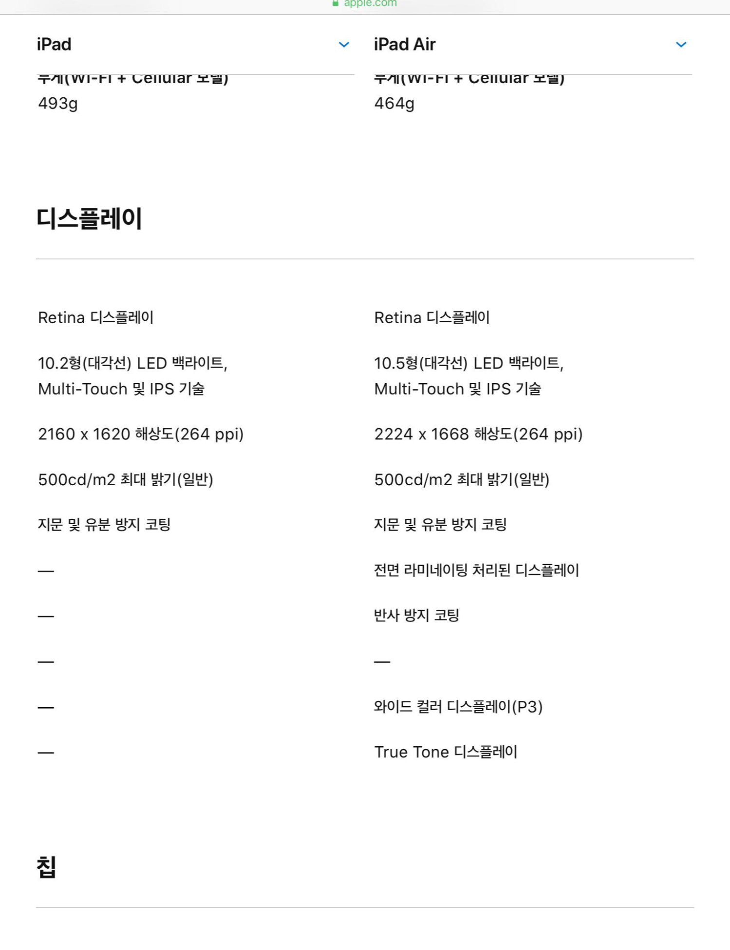 ● 저는 트루톤 디스플레이와 액정 라미네이팅 등 더 다양한 기능을 원해요 -> 에어3세대